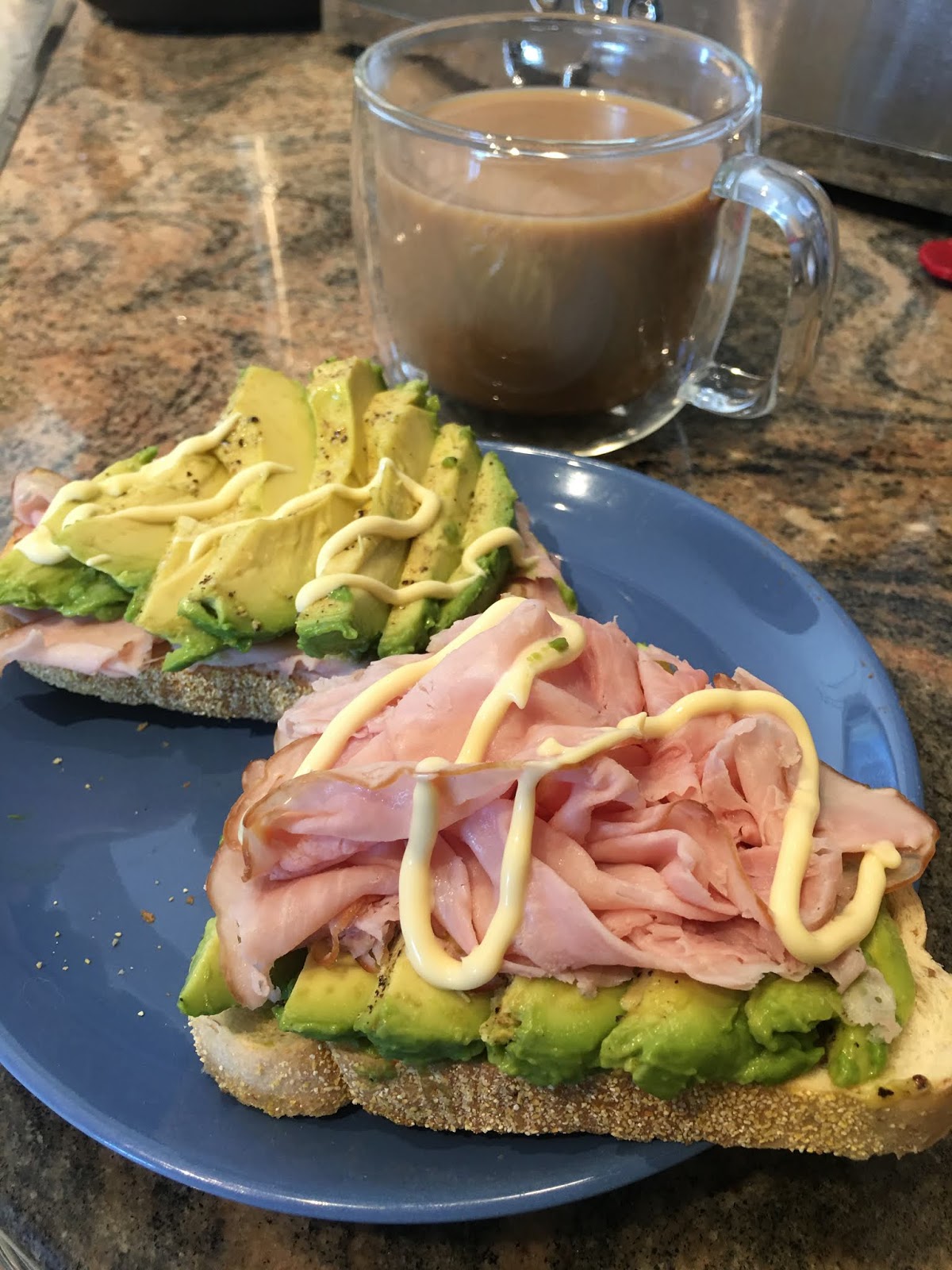 Avocado, ham, and Japanese Mayo on Rye.