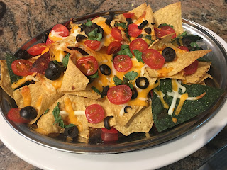 Nachos; pickled daikon - an unsuccessful attempt at "chicken mu"; open-faced egg salad sandwiches.