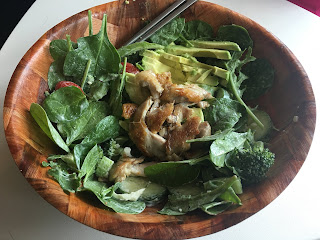 I made a lot of big salads and it was easier to get in a lot of fibre and veggies when cooking all the time in the summer season with good produce, instead of going out to eat. I think I lost a little tiny bit of weight over those months.